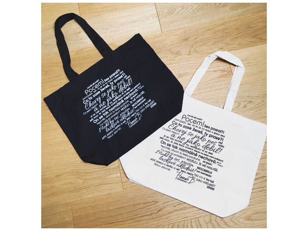 Pevná velká bavlněná taška s digitálním potiskem. Vybrat si můžete z černé a přírodní režné barvy.Šířka 49cm, výška 40cm.