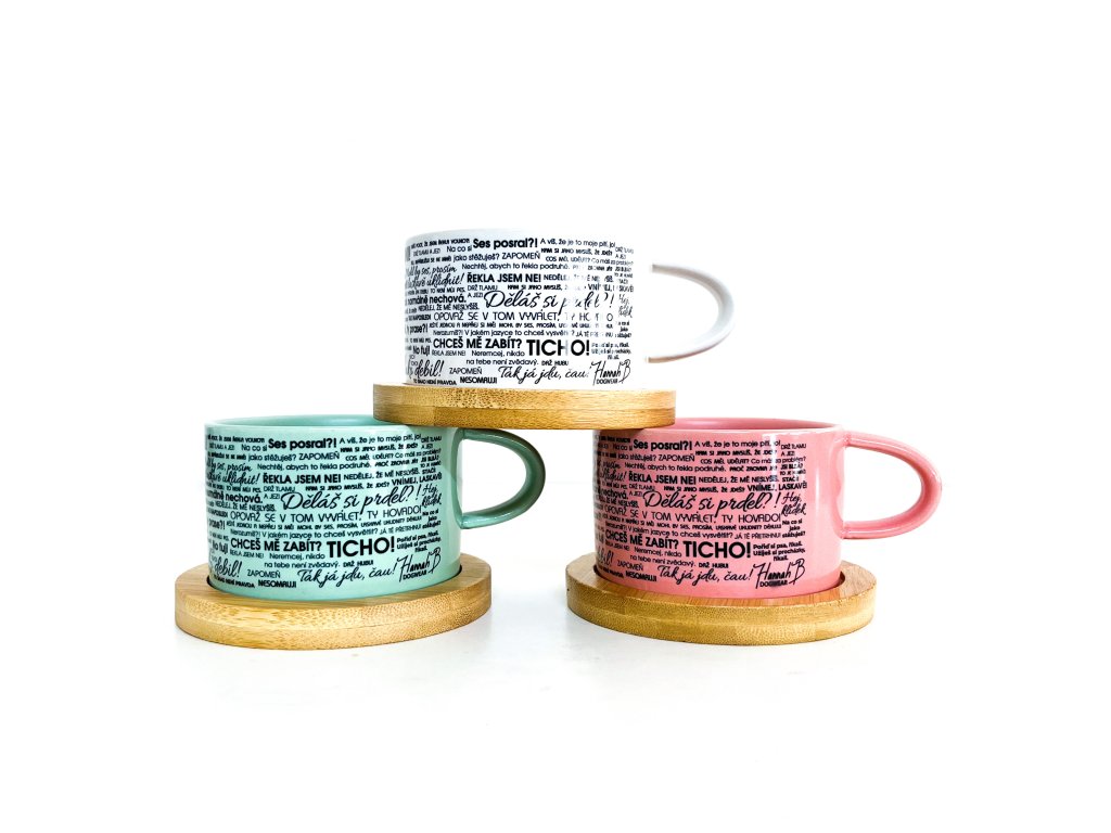 Roztomilý espresso hrníček o objemu 200ml ve třech barvách, včetně dřevěného podtácku.