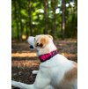 Obojky jsou ušité ze softshellu a potištěné naším vzorem, který je přizpůsobený šířce obojku. Díky technologii potisku je zapuštěný přímo do vláken a tak se nikdy nesepere. Softshell je odolný materiál se snadnou údržbou, stačí hodit do pračky a špína je pryč. Nevadí mu koupání, větvičky v lese ani bláto. Obojek má vždy nastavitelnou délku, která vychází z vámi dodaného obvodu.