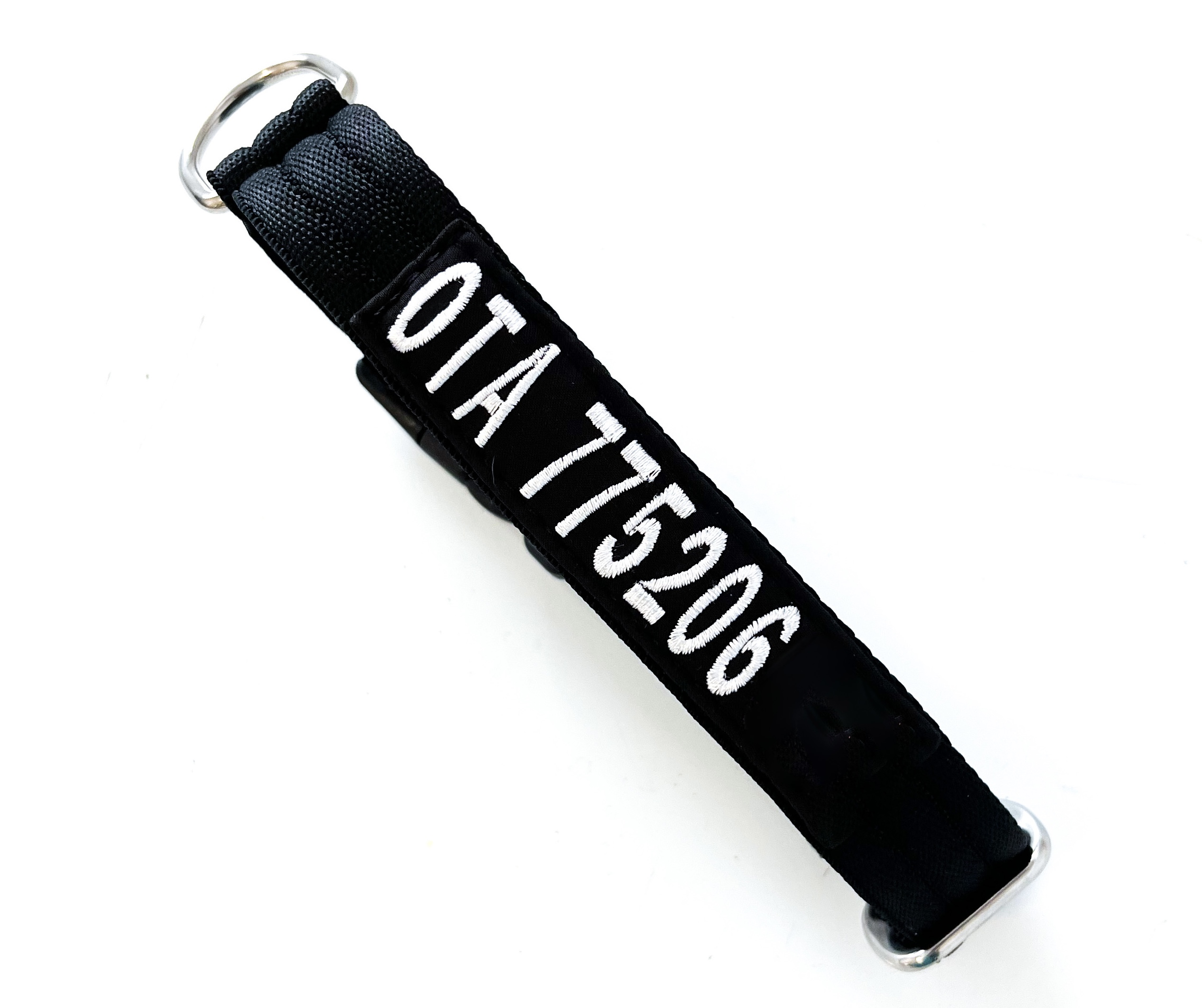Bezpečnost na prvním místě! Označte svého psa výšivkou s telefonním číslem, případně jména pejska. Podklad výšivky je vždy černý. U tohoto typu obojku je výšivka vždy jednořádková, v případě jména i telefonu je text vyšívaný za sebou. Minimální délka obojku pro výšivku je 40cm.