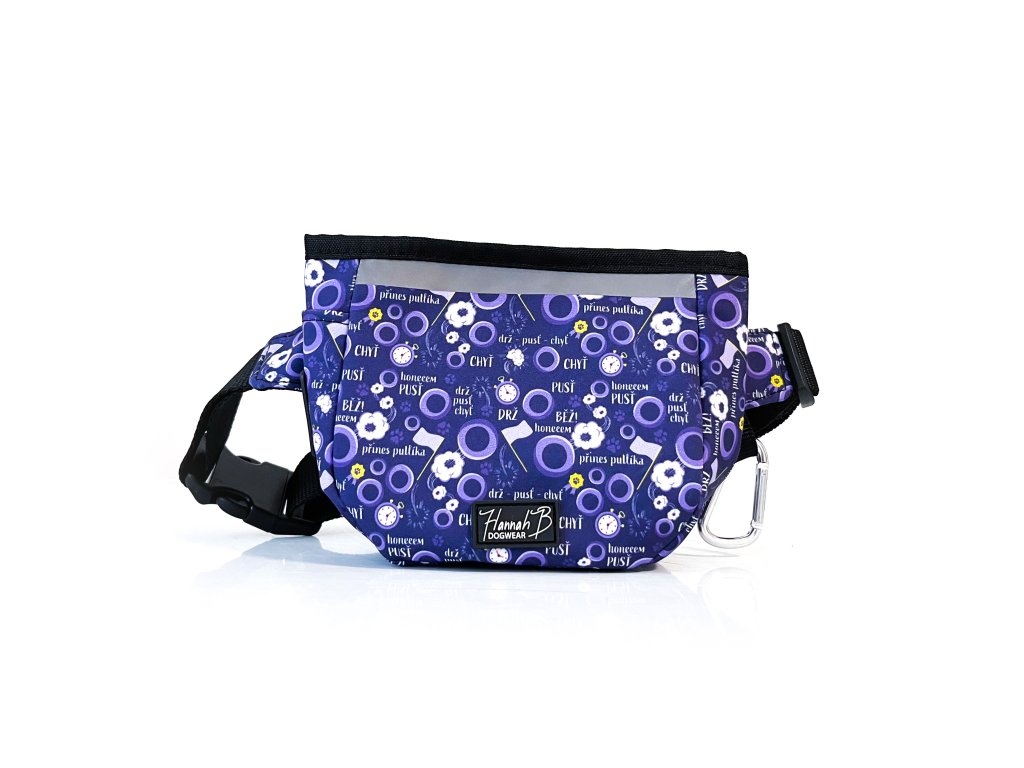 Jedna kapsa na pamlsky, jedna malá boční kapsička na sáčky a karabinka na připnutí jakékoliv nezbytnosti. Nesmí chybět ani reflexní prvek. Zapínání na magnetku.