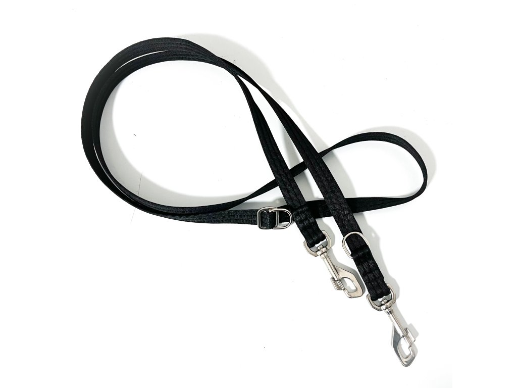 Díky dvěma kroužkům – jednomu nastavitelnému a druhému napevno u karabiny – si snadno zvolíte ideální délku nebo způsob vedení psa.